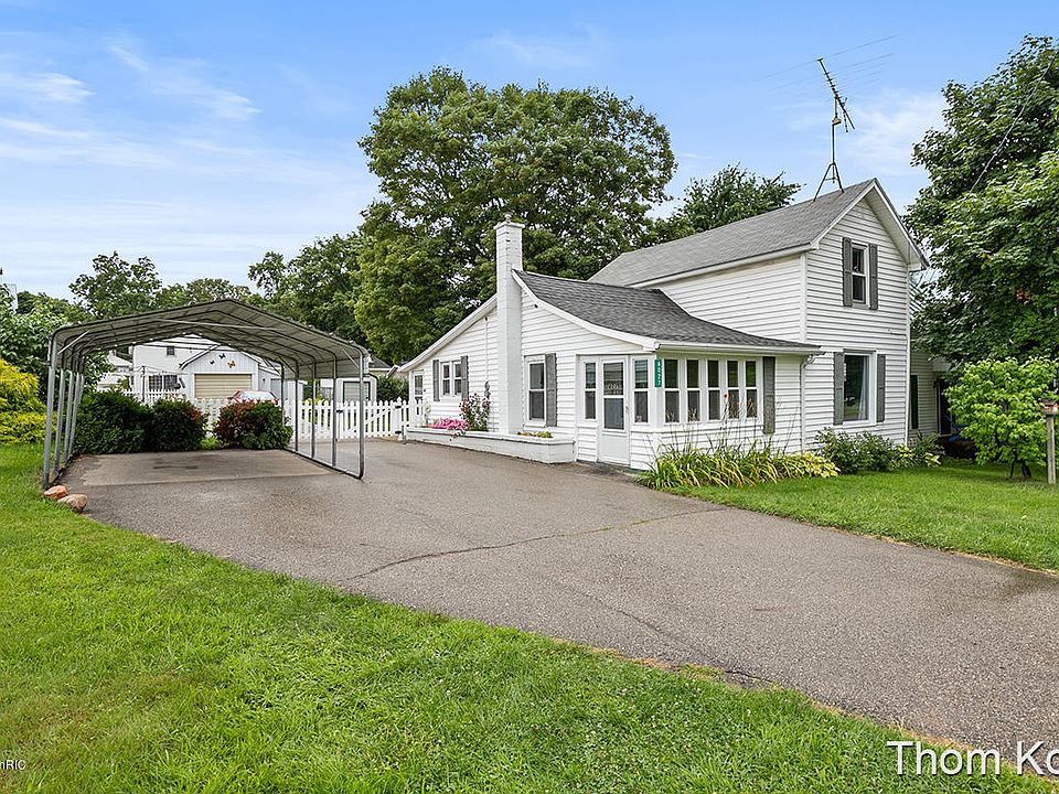 Welcome to Alto served by Lowell schools! Center of town location next to two parks with a fenced in backyard including a gazebo, dog walk and large shed. Home has two porches, three bedrooms (one on main floor and two connected bedrooms on the second level). Two living areas off of the kitchen. One car garage with additional storage area and also a carport for that second car.