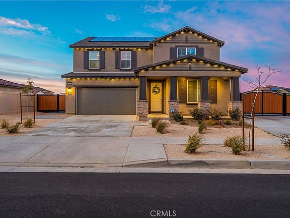 *** VA loan assumption 5.125%*** Welcome to this stunning, brand-new two-story home! With over 3,000 sqft, this spacious home offers five bedrooms and three bathrooms, providing the perfect layout for family living. The home also features a versatile loft, ideal for an office, playroom, or additional living space. Boasting over $100K in custom upgrades, the home is designed for both luxury and convenience. Key features include: Custom Iron/Wood Gates with Automatic Opener: Secure, stylish entry with automatic gates for added privacy. RV Parking: Ample space for RV storage or extra vehicle parking. Gazebo with Electrical & Custom Sound System: A beautifully crafted outdoor space perfect for relaxing or entertaining. Custom Shed/Workshop with Subpanel & RV Power Hookup: The ideal space for hobbies, projects, or extra storage. Epoxy Garage Floors: Sleek, durable floors that elevate your garage's style. Paid Solar Panels: Energy-efficient, fully paid-for solar panels to lower energy costs. Two-Tone Interior Paint: A modern touch, enhancing the beauty of the home's interior. Govee Exterior Permanent Holiday Lighting: Energy-efficient, year-round lighting for festive charm. The home features a custom open floor plan, creating an inviting flow between the living, dining, and kitchen areas. The amazing kitchen includes quartz countertops and high-end finishes, making it the perfect spot for cooking and entertaining. Located in a desirable area of Lancaster, this home blends modern luxury with practical living spaces. From the spacious loft to the upgraded outdoor areas, this home has something for everyone. Don't miss the opportunity to own this exceptional property! Contact us today to schedule a tour.