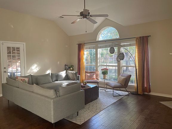 Beautiful bright and airy one story house on greenbelt. Hardwood floors, Kitchen with SS appliances, gas cooktop, and 2 pantries. Formal living, 2fireplaces and real wood built-ins in the study for home office. Large covered flag stone patio leads to wrought iron gate out to jogging trails and pond. Walk to excellent Frisco schools. Access to 3 community Pools, clubhouse, gym, trails Renters responsible for gas, water and electric.