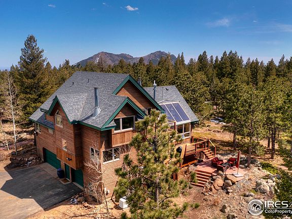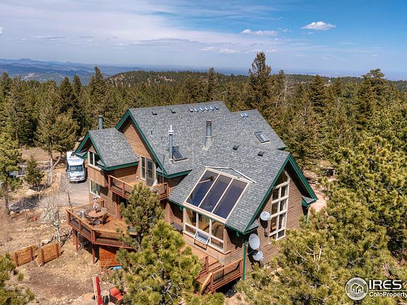 TAKE IN THE VIEWS of James Peak, Longs Peak and the Continental Divide from your Kitchen, Great Room or Primary Suite in this 3 story Foothills Chalet. It's Why you move to Boulder! WOW-this CUSTOM home with Skylights and Decks galore is Architecturally Designed to Bring the Outdoors in. Bathed in natural light and stellar views, this is the One of a Kind home you're looking for. Hike from your door or relax on one of your many rock outcroppings. Stroll on over 6 level acres, only 5.7 Beautiful miles to Boulder, just steps to Walker Ranch with 6000 acres of trails and open space! 3beds/3baths and office/artist's room makes this the ideal size and space for all your lifestyle needs. Completed in 1990 with tons of upgrades/recent updates including All NEW: Kitchen, Roof, Bathrooms, Skylights, Windows, Wood floors/ Decks/Flagstone Patio/Entry Way/Gutters, Boiler! Tons of storage, a 3 car attached garage with workshop, a whole house fan and conveyed back up generator make this Your Mountain Retreat, Just Minutes to Boulder. Septic Smart Approved and Certificate In Hand. See Floor Plans in Documents Tab!