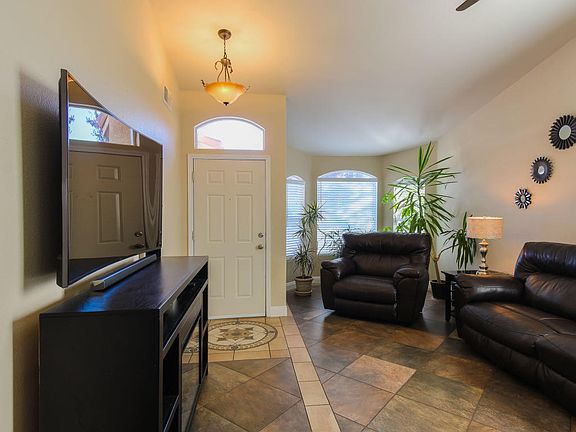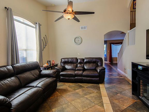 Gorgeous DR Horton home located in the Story Rock community on a great corner lot, just a few blocks from the Petroglyph park! Home features 2,094sf with 4 bedrooms, 2.5 bathrooms, 2 living areas, and a 2 car garage! Beautifully upgraded tile flooring throughout main living areas! Spaciously designed eat-in kitchen with ample cabinet space, granite countertops, newer stainless steel double oven, custom backsplash and a center prep island with seating space! Open living area with a stunning fireplace with natural stone surround! Master suite with raised ceilings, sitting area and private bath. Bath hosts dual sinks, a garden tub and separate walk-in shower. Enjoy the large fully landscaped backyard with an open patio! Dog park, walking trails and shopping just around the corner!