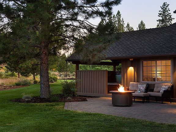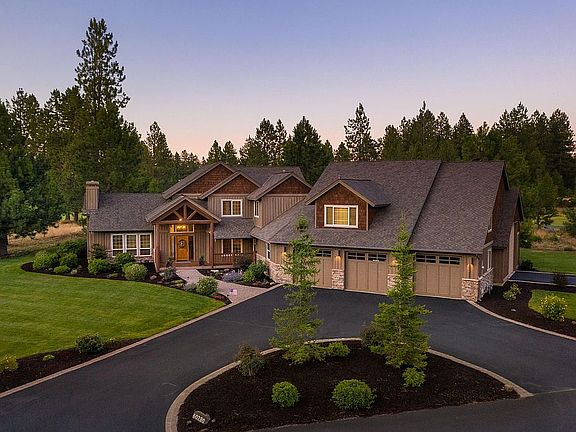 Northwest architecture meets grand rustic style in this striking home showing accents of hickory and alder woods and stone. Highlighted by exposed timber ceiling accents, entertainer's kitchen has a gorgeous granite island, Kitchenaid professional appliances, The lower level owners suite is large and luxurious with a spacious walk in tile shower, dual shower heads, double sink vanity and heated floors for cold winter mornings, grand walk in closet with custom closet organizer, and a relaxing Artic Spa just a few steps outside under a rustic covered patio area. Downstairs is a spacious home office with expansive cabinetry. Upper level is an entertainer dream with enormous screen and a Sony 4K movie projector system. Bring your cars, boat, RVs as the 5-car garage will provide all your storage needs. Outside, enjoy numerous living spaces including patio with gas piped BBQ. This home is only five mins up the road from the prestigious new Caldera High Schooling's Bend set to open Fall 2021
