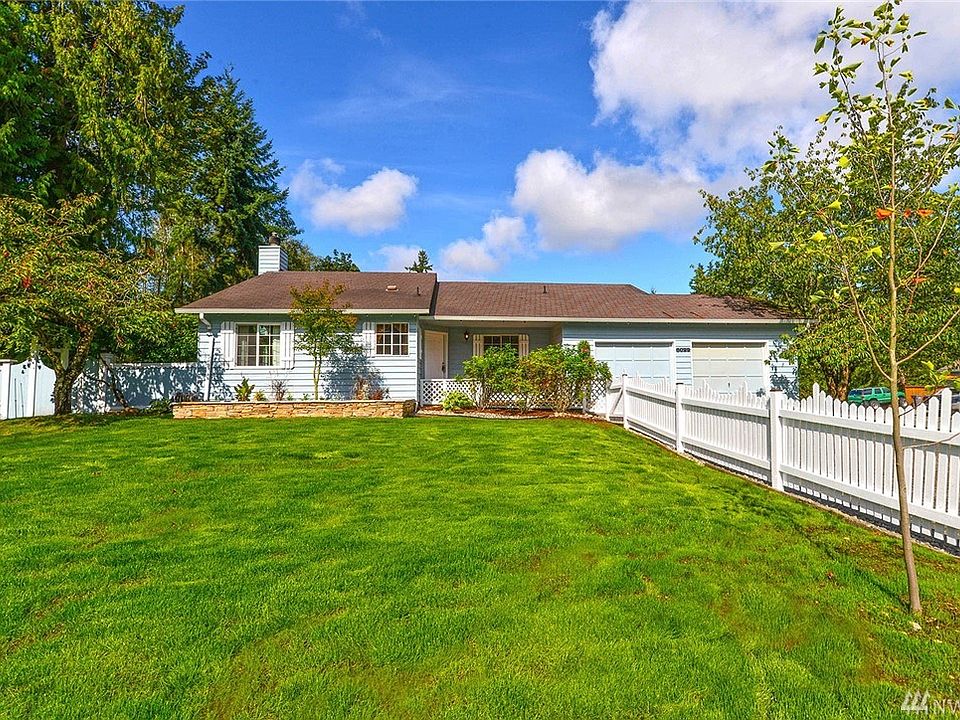 Delightful home located on a large corner lot in Silver Firs that backs to a greenbelt and is walking distance to schools. This light filled home is great for entertaining with a spacious living room with Maple hardwood floors, vaulted ceiling and gas fireplace that connects to the dining area with French doors to the patio and the updated kitchen with all new Cherry cabinets, granite countertops and stainless steel appliances. You will appreciate this homes three good-sized bedrooms including a master with an updated full bath. Step outside to your very own oasis with a garden, patio, flagstone courtyard and fully fenced yard.