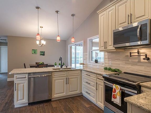 NEW PRICE 335,900. SELLER WILL provide Home warranty. Seller motivated! Bring all reasonable OFFERS.Allowance for new AC, Garden Lakes Estates, NOT 55 plus community.Beautifully updated spacious 4 bdrm/2 ba with vaulted ceilings. Formal living/dining + big family room, formal dining and eat in kitchen. New Kitchen granite counters, high End SOLID WOOD with self closing drawers in Kitchen and bathrooms. All New stainless steel appliances.The Master Suite is spacious with his/hers walk-in closets, garden tub and two vanities. Natural light brightens the open entry way, formal dining and family room where there is another set of sliding glass doors to the lanai. Low HOA fees $475 quarterly. Home maintenance fee covers FULL lawn service (mow, trim bushes) and cable tv. Relax in your own private pool.Conveniently located near shopping centers and restaurants only 4 miles from I 75 and 10 miles to the Gulf of Mexico.