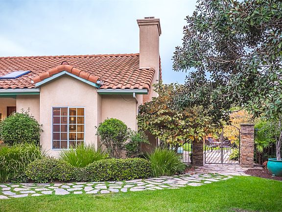 Seller will entertain offers between $674,900 - $699,900. First time ever on the market! Located on an exclusive private road tucked behind Harry Griffen Park. Exceptionally designed custom built single-level home offers vaulted ceilings, hand-scraped wood & Italian porcelain tiled flooring, a 3-Car garage & numerous sky-lights throughout. Complete kitchen remodel features granite counters, high-end stainless appliances & Thomasville wood cabinetry. A huge master retreat with separate shower/tub & walk-in closet and beautiful grounds ideal for entertaining. Highlights include vaulted ceilings in living spaces and master bedroom/bath and 9 ft ceilings throughout, concrete tiled roof, Pallazzo Roma soft hand-scraped variable width wood and Eleganza Italian color-through porcelain tiled flooring, numerous sky-lights, separate laundry room with sink, dual-pane windows with wood sills, 3-Car garage, forced-air HVAC, wet-bar, 2 fireplaces, multiple ceiling fans, security system, mirrored closet doors, auto-irrigation, newer hot water heater with recirculating system, whole house rain gutters, LED lighting, and fenced in backyard, side yard and kennel. A beautiful Artisanal double iron gate leads to a private patio featuring a custom Three Rivers stone pathway and seating area under trellis surrounded by lush manicured grounds perfect for entertaining and gardening with mature landscaping, producing fruit trees and a rose garden. Truly a rare opportunity to own a one-of-a-kind property near great schools, shopping and dining, trolley station and easy freeway access. Property Video Tour: https://youtu.be/JWxXf9NCRMg