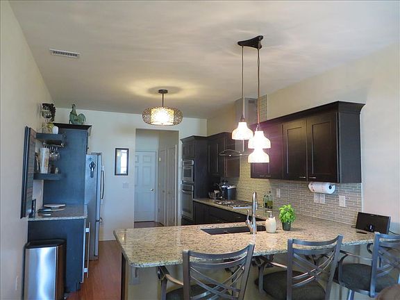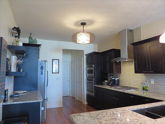 Gorgeous bamboo flooring and a spectacular totally redone kitchen features granite counters, upscale appliances, cabinets, and wine refrigerator. All bedrooms have walk ins. New light fixtures, freshly painted, private patio with scenic views of pond area with walking path. Walk to private pool. Storage galore!