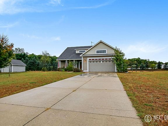Craftsman style home with a cottage feeling. Vaulted ceilings with a floor to ceiling river rock fireplace make this living room live large. 3 sliding doors on the back of the home make it light and bright. The kitchen, dining area and living room are open concept. The first floor has authentic 3/4'' antique distressed red oak floors. Cherry wood cabinets and black granite counter tops are in the kitchen. The master suite has a slider to the 3 season room, large walk in closet, bath with standalone shower, soaking tub and vanity with vessel sink. Main floor laundry, full bath and mudroom along with large 2nd bedroom finish off the main floor. Family room with fireplace, 2 bedrooms, full bath plus storage complete the daylight lower level. Private access to the Kalamazoo River is at the