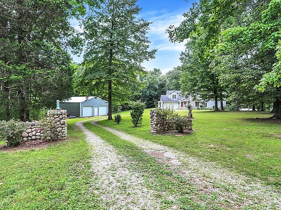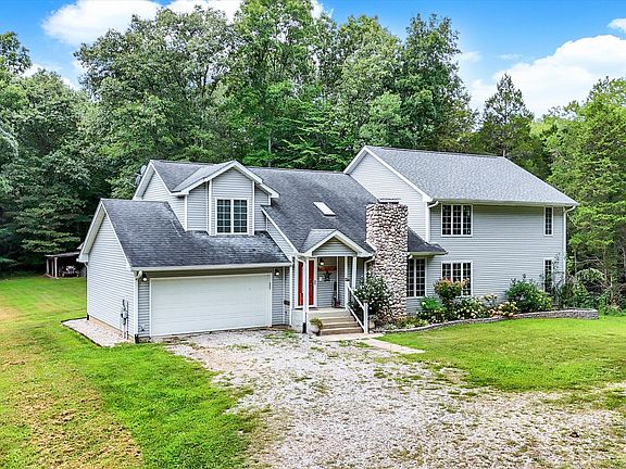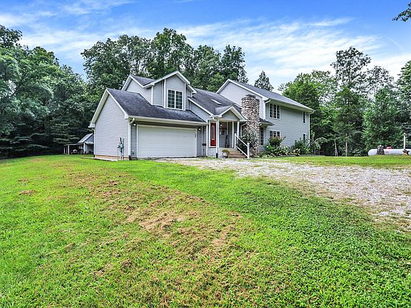 Welcome to paradise located on an expansive 10 acres! This 3-bedroom, 3.5-bathroom home that spans 3,064 sqft has been thoughtfully updated including a stunning transformation of the primary suite. As you step inside, you're greeted by a spacious living room with soaring vaulted ceilings and a floor-to-ceiling stone fireplace. Through the glass doors, you'll discover an additional expansive living area, seamlessly connected to the kitchen and dining spaces-ideal for entertaining. The kitchen features an enormous island, abundant counter and cabinet space, a pantry, and stainless steel appliances, including a refrigerator, oven/stove, dishwasher, and microwave. Upstairs, the generously sized primary suite serves as a luxurious retreat, with tall ceilings, large windows, and a completely remodeled en suite. The en suite is designed for relaxation, featuring double sinks with a spacious vanity, a walk-in glass shower, and a free standing tub. Two additional large bedrooms with ample closet space and two full bathrooms offer comfort and convenience for family or guests. The finished basement expands the living space, complete with another impressive floor-to-ceiling fireplace and a versatile open area perfect for entertaining. Whether you envision an office, playroom, or movie room, this space offers endless possibilities. Step outside to your own private oasis, featuring a large deck with a gazebo and a professionally installed pool, perfect for summer relaxation and entertainment. The beautifully landscaped yard covers 3-4 acres and is surrounded by adjacent wooded parcels, ensuring added privacy. The property also includes a large pole barn, ideal for vehicles, toys, or extra storage. Conveniently located near Nashville and Columbus, this home offers an easy commute to town while providing the tranquility of rural living. This property truly offers the best of both worlds-don't miss your chance to make it your own!