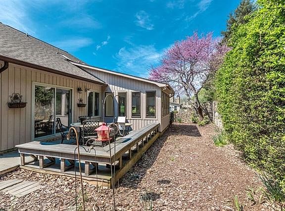 Incredible custom built townhouse in the beautiful Pebble Creek Townhouse community. Dramatic 2 story great room opens into dining area and sun-room all of which overlook the well manicured exterior area. Laminate wood floor installed on main level 3 years ago with additional updates as well and is just breath taking in the living areas. Kitchen has been well designed with many cabinets and counter space including a center island with pull out shelving. Main level Owner's suite with bath and large dual closets. Bedroom 2 also with dual closet space shares the hall/guest bath. 2nd level Owner's suite with over-sized jetted tub, dual vanities, double linen closets and 2 spacious walk in closets. Beautifully manicured landscaping with mature flowering plants and trees year around. Private rear trek decking and built in seating for grand cookouts or just relaxing. This is one you'll want to see quickly.