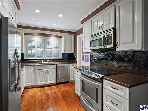 Nicely maintained brick home in the downtown historic district of Cheraw. Landscape includes a variety of flowering shrubs that are bursting with colors during the spring and summer! Beautiful hardwood flooring throughout most of home. Updated kitchen with solid surface countertops, tile backsplash and stainless appliances. Enclosed sun porch on back of home. 3 BD/2 BA. Bedrooms have large closets and there is ample storage space throughout the home. Fully floored attic space providing easy storage.