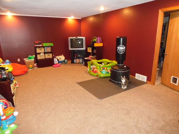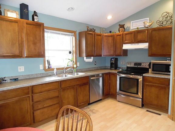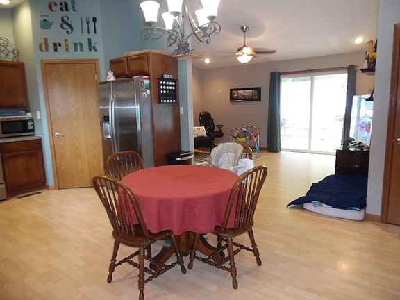 Quality built ranch home with 3 large bedrooms all with walk in closets. The open floor plan features a eat in kitchen and living room. There are sliding doors from the living room to a nice deck and fenced backyard. No step entry from the garage to the main floor. First floor laundry. Basement finish includes bedroom with bath and egress window, a large family room with nice lighting. The basement also has lots of storage. Very low heating cost. Geo thermal heating and cooling. The budget with Mid American is $165 per month. With the low interest rates make this lovely home yours!!!