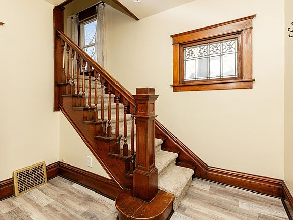 Explore the timeless charm of this charactered home that integrates modern updates. From the updated kitchen and bathroom to the new LVP flooring and carpet, this property exudes a harmonious blend of old and new. Three bedrooms on the second floor offer ample closet space, complemented by a full bath. The main floor showcases a spacious living and dining area, leading to a lovely kitchen with a glass door opening to a composite deck for serene evenings. Admire the beauty of leaded glass windows and other tasteful features throughout. A detached 1-car garage and backyard shed provide additional storage. Don't miss the chance to make this your home sweet home.
