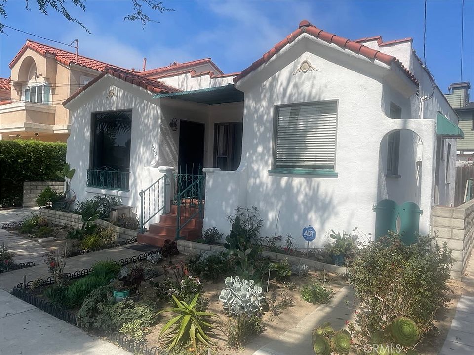 Charming two bedroom Spanish home. Single story charmer, three blocks from the sand and ocean. Great location close to schools shopping, entertainment & pier. Late 1920's home with lots of character arched ceilings in living room, coved ceiling in dining room, lots of light flood thru large windows, cute breakfast nook could be office area, beautiful hardwood floors & large servive porch. Good sized bedrooms & closets. Sunny south facing partially enclosed front porch complete this very unique property. Must see.