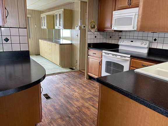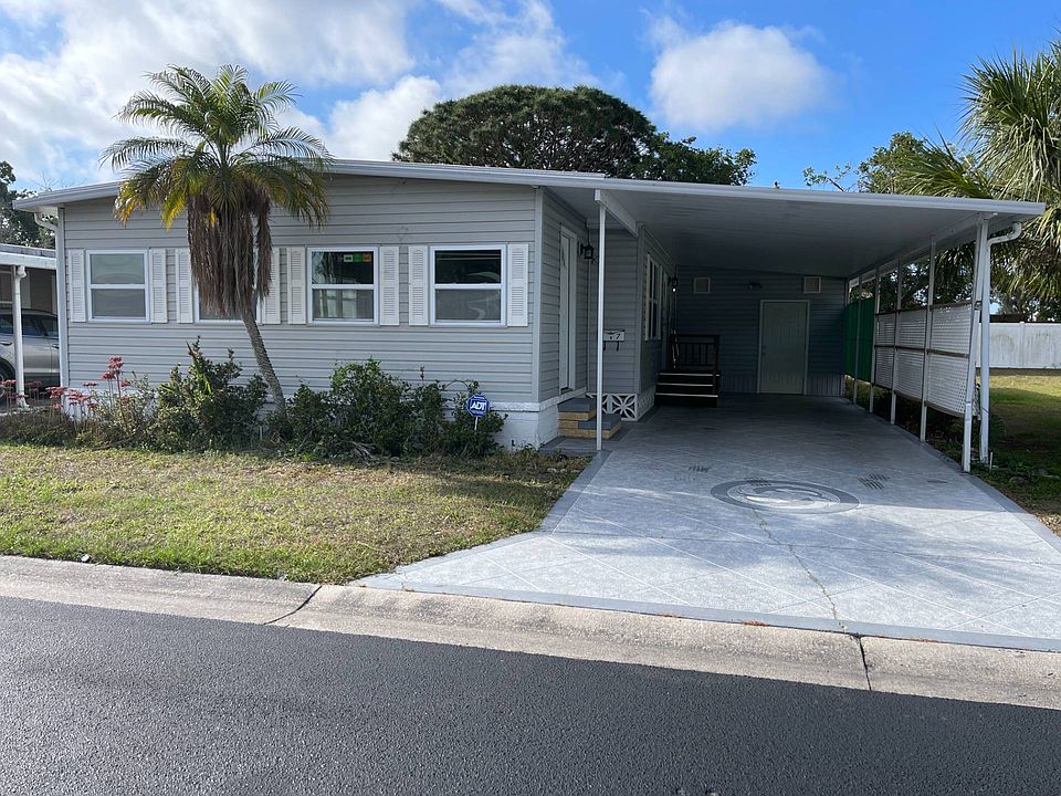 There's some work to do, but the big stuff is done! Bring your elbow grease and decorators touch to make this home shine. A motivated Seller offers this doublewide home with 1,200 square feet under air. An AC system with new duct work was installed in 2022. Beautiful replaced kitchen cabinetry and counter tops with plenty of storage. New windows throughout this home including the finished lanai. The floors all seem solid except a small area in the en suite bathroom (toilet area) but the carpet has to go! Both bathrooms are fairly original and in clean condition. The second bedroom will easily accommodate a queen size bed and has two standard sized closets. The primary bedroom will hold a king size bed and has two standard closets plus a walk-in closet. The exterior of the home just needs a little TLC with some minor repairs and a good cleaning. The home sits on a perimeter lot with a large backyard an trees. The carport will easily hold two cars and has an enlarged storage shed with laundry. This home is centrally located in Bradenton, just A few miles north of the Sarasota Bradenton International airport and about 15 minutes to Gulf Coast beaches. Bayshore Windmill Village is a gated, land lease, 55+ community with clubhouse, swimming pool, shuffleboard, pickle ball, library, pool table and organized activities. Lot Rent is $957 and includes lawn maintenance and park amenities. Background check and approval is required. The community is pet free with the exception of emotional support or service animals with physicians documentation. Sub-renting is not allowed. AGENT MUST SHOW BY APPOINTMENT 603 63rd Ave W Lot HA-7 Bradenton, FL 34207