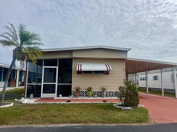 This 1972, 872 sq. ft. mobile home features 2 bedrooms and 1.5 baths in a comfortable split floor plan that's ideal for hosting guests. One bedroom includes an adjoining half bath, while the primary bedroom sits on the opposite end with built-in dressers, extra closet space, and a spacious sitting area. The full bath offers a stackable washer and dryer, and the main living area includes an open kitchen and dining room leading into a bump-out living room, expanding the width to a full 24'. Enjoy a relaxing screened-in porch just off the main living space. Outside, the property includes two-car-plus carport parking, an oversized shed with workspace, and a peaceful location on a cul-de-sac. The home is turnkey furnished and, while dated, has been kept clean and in fair vintage condition-perfect for someone who appreciates original character or wants to add their own style. ASK TO SEE OUR VIDEO HOME TOUR! This home is centrally located in Bradenton, just a few miles north of the Sarasota Bradenton International airport and about 15 minutes to Gulf Coast beaches. Bayshore Windmill Village is a gated, land lease community offering resort-style living for active adults. Normally a 55+ community, it is now welcoming residents 45+ for a limited time. Enjoy a clubhouse, swimming pool, shuffleboard, library, pool table, and a calendar full of organized activities. Lot rent is $1,058.50 and includes trash, tax pass-through, lawn maintenance, and use of all park amenities. Now pet-friendly-bring up to two pets, totaling 40 lbs. Subleasing is permitted with age and background application approval, at the discretion of management. Florida Life Mobile Home Sales, Inc. does not provide guarantees on the accuracy of this information or the condition of any properties. It is recommended that buyers conduct their own independent research and inspections. AGENT MUST SHOW BY APPOINTMENT 603 63rd Ave W Lot HA-21 Bradenton, FL 34207