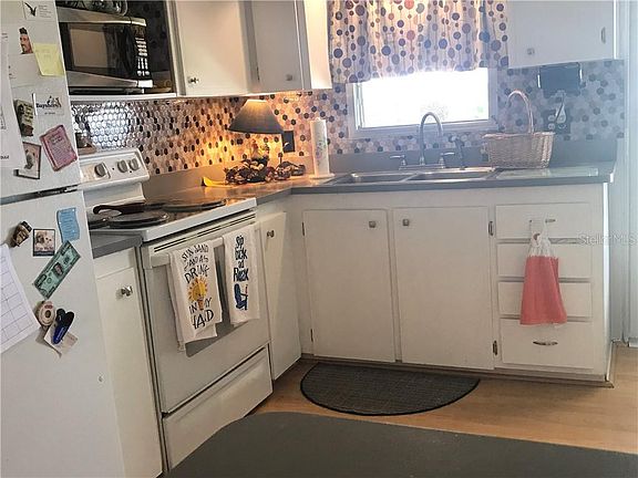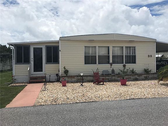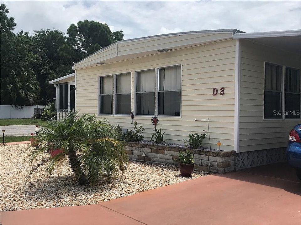 Nicely maintained double wide home with nice curb appeal. Vinyl siding gives this home a fresh look with easy maintenance landscaping. Nice touches in the kitchen with easy to maintain back splash and an open feel. Rooms are large with plenty of closets and storage. Off your bright, but northern facing, living room you will enjoy sliding door access to a large enclosed lanai. The lanai is a bonus all weather room with loads of possibilities. Owner is flexible on some furnishings if you need a start. Don't wait to see this unit! The gated community offers larger lots, wide roads, heated swimming pool, clubhouse, shuffleboard, library, billiards and a very busy social calendar. Agent is also the community manager and onsite M-F 8-4.