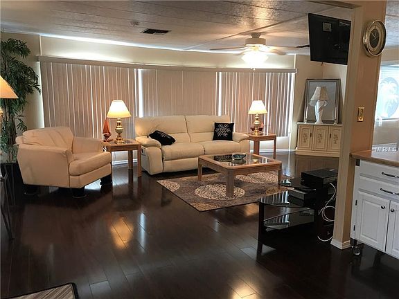 Back on the Market! This beautiful home is turnkey and decorated with contemporary yet traditional style furnishings. You will enjoy the extra openness of the living room, dining room and kitchen. The lanai is enclosed and accessible with sliding glass doors off the living room. Updated bathrooms; one with a walk-in shower and one with a tub. This home also has a rare indoor laundry room. Overall, the home is impeccably maintained and is ready to move right in. Storage is no problem with two large sheds. The carport is a double car length and has room for outdoor furniture. You won't be disappointed with the lovely over sized corner lot and home. AC and duct work is approximately 1 year as well as the appliances. The home has been rarely used for a few weeks each season. The gated community offers larger lots, wide roads, heated swimming pool, clubhouse, shuffleboard, library, billiards and a very busy social calendar. Agent is also the community manager and onsite M-F 8-4.