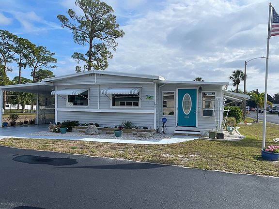 Prime oversized corner lot just steps away from the swimming pool, pickle ball courts, shuffleboard, and clubhouse with endless opportunities for fun and friendships! Located in Bayshore Windmill Village, a 55+, land-leased, gated community, this updated home is priced to sell. Check out this two bedroom, one and half bathroom home. Plenty of room in this home with 1,232 square feet under air. The floor plan is open and allows for flexibility of your space. Your kitchen has plenty of storage and counter space with wood cabinetry, solid surface counter tops and a fun tin tile backsplash. The bonus room is divided from your living room and dining room area by glass French doors, so it's easy to include this space in your design or close it for some additional privacy without a closed in look. It's just perfect for an office or TV room. Updates include laminate flooring throughout the home, kitchen appliances, hot water heater and the AC is just a few years old. Both bathrooms are updated with new cabinetry and a walk-in shower enclosure. The primary bedroom is spacious with 3 closets, built-in storage and includes your private half bath. The second bedroom includes a built-in vanity with storage and a good size closet. Regular maintenance and upkeep is easy to see here. Talk about curb appeal! Additional updates include a nice grey vinyl siding, new windows and lead glass panel front door. A double length carport with 4-post construction leads right to the garage style building with opening measuring 7' x 6' 7", includes laundry and storage area. With double doors in the front and rear of this enclosure, you might prefer to keep a golf cart stored or create a hobby room. Lattice panels have been added to the side of the carport to enhance your outdoor living. Don't worry about space because there's a second storage shed on the rear of the house for tools and all your beach toys! Enjoy the backyard patio with built-in entertainment as you watch the passerby's on their way to mailbox or pool. This home is offering quality and value. This home is centrally located in Bradenton, just A few miles north of the Sarasota Bradenton International airport and about 15 minutes to Gulf Coast beaches. Bayshore Windmill Village is a gated, land lease, 55+ community with clubhouse, swimming pool, shuffleboard, pickle ball, library, pool table and organized activities. Lot Rent is $957 and includes lawn maintenance and park amenities. Background check and approval is required. The community is pet free with the exception of emotional support or service animals with physicians documentation. Sub-renting is not allowed. AGENT MUST SHOW BY APPOINTMENT 603 63rd Ave W Lot L-1 Bradenton, FL 34207