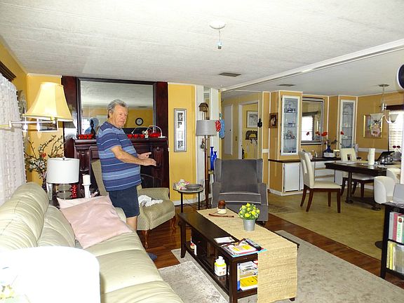 Hurry and come check out this newly painted two bedroom two bath mobile home. With lots of space. This home has approximately 1100 square feet of living space. There has been a lot of updates through this home, the floors were replaced with plywood then covered with laminate / tile. The plumbing has been redone. The electrical has been recently checked and improved with breaker box. The kitchen has been redone with new cabinets new stove a new dishwasher all in 2018. The roof has been checked and resealed. And there is an antenna that allows you to get 50 channels for free. As you can see from the pictures, this home is quite spacious the living room is 12 by 22. The dining area has Bill in China hutches I need enough room for full size dining table. The kitchen a bright new cabinets in 2018 it has a dishwasher a newer stove the bar area was built in 2018 also, with tile flooring. The master bedroom In this mobile is extremely large, the room host a king-size bed at the present time with lots of room left over, also has two closets, and hard wood laminate flooring. your master bath is attached has a walk-in shower that is large enough for a shower seat. The second bedroom is currently be used as an office it is a approximately 9 by 13 and has a small walk-in closet. Some of the extras that need to be pointed out is inside laundry, Lanabi that has wood beams and has glass windows making this and all season room. The Landscaping has been done and that includes a rear concrete area with gazebo, steps for the mobile have been replaced with masonry steps. This home is in Bayshore windmill Mobile Home Park a lot rent covers water trash sewer , and lawn mowing. This park has a beautiful swimming pool, Clubhouse. And lots of activities. Location is also important this mobile home has access to many shopping stores grocery stores banks drug stores within walking distance. You're only a 15-minute drive to some of the most beautiful white sandy beaches. You're a 10-minute trip to Sarasota Bradenton airport or your 45 minute drive to the Tampa International Airport. So make your appointment today.