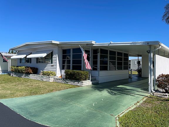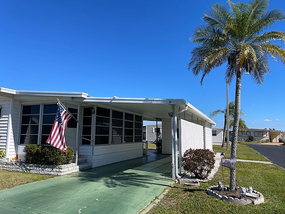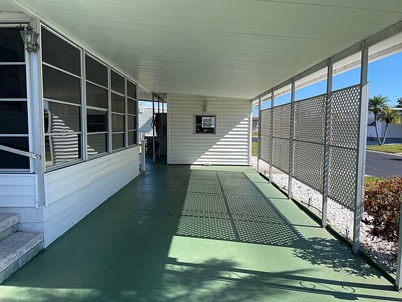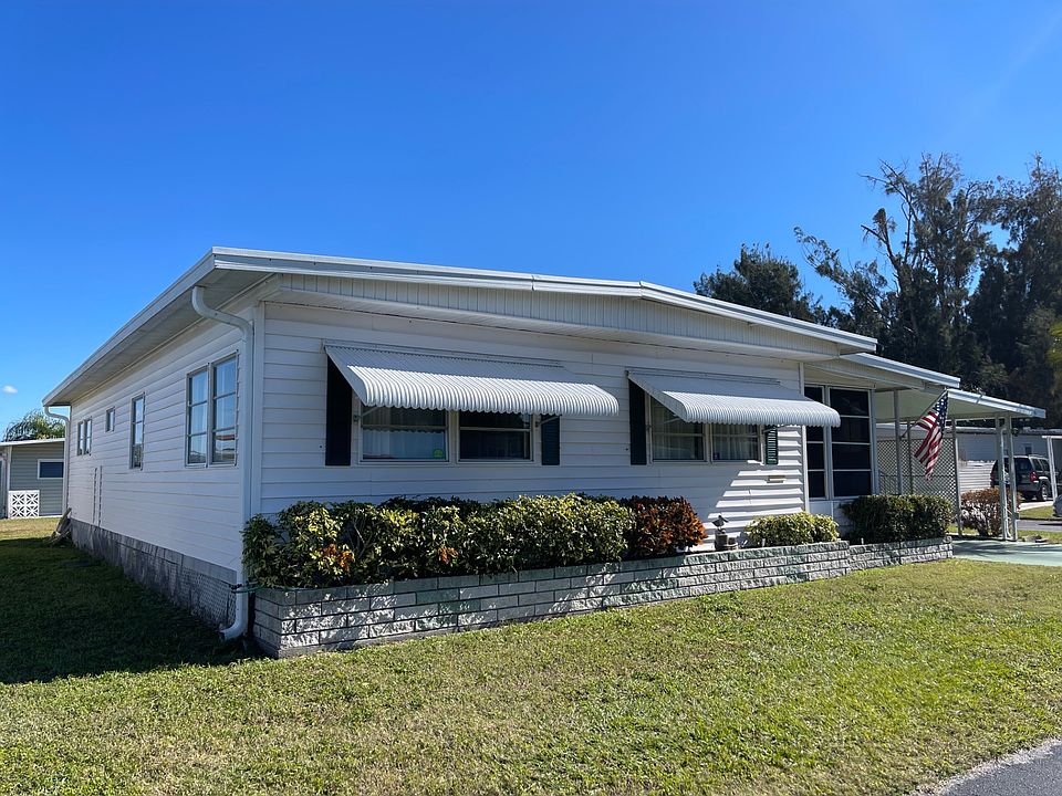 Large corner lot in the center of the community. Make this sprawling doublewide home yours. The home has 1,056 sq ft under air and an additional lanai and covered patio area. There's plenty of room to enjoy this Florida home, whether year round or for the winter season. The living room is open to the lanai as well as the dining room. Cook up something wonderful in this nicely appointed kitchen. The guest bedroom opens directly to the guest bathroom making this a double master type layout. The primary bedroom has ample space for a king size bed, furniture and has it's own updated bathroom with stand-up shower. The lanai and patio is where the Florida living is at it's best. The layout is ideal and provides plenty of room for entertaining. Added to the carport enclosure is a storage shed and laundry combination. This home is centrally located in Bradenton, just A few miles north of the Sarasota Bradenton International airport and about 15 minutes to Gulf Coast beaches. Bayshore Windmill Village is a gated, land lease, 55+ community with clubhouse, swimming pool, shuffleboard, pickle ball, library, pool table and organized activities. Lot Rent is $957 and includes lawn maintenance and park amenities. Background check and approval is required. The community is pet free with the exception of emotional support or service animals with physicians documentation. Sub-renting is not allowed.