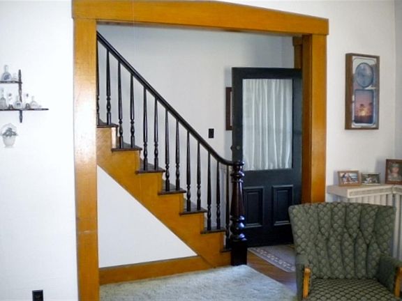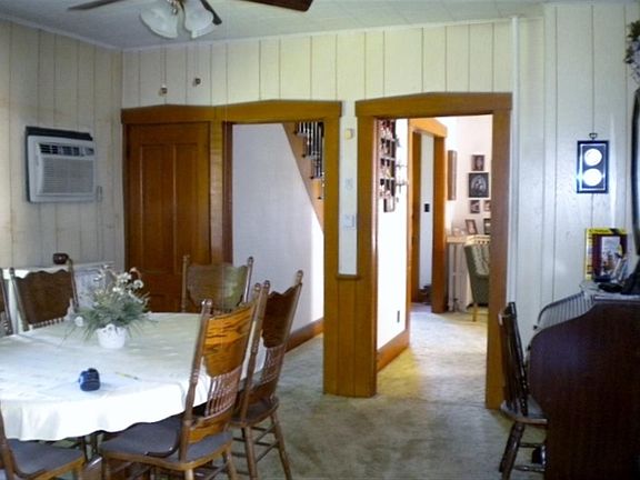 Nice 3 bedroom home with original woodwork, open stairway, 2 bath areas, and oversized 2 car garage on alley. Home sits on 1 1/2 lots. Boiler just inspected. Some electric updates 7/13.