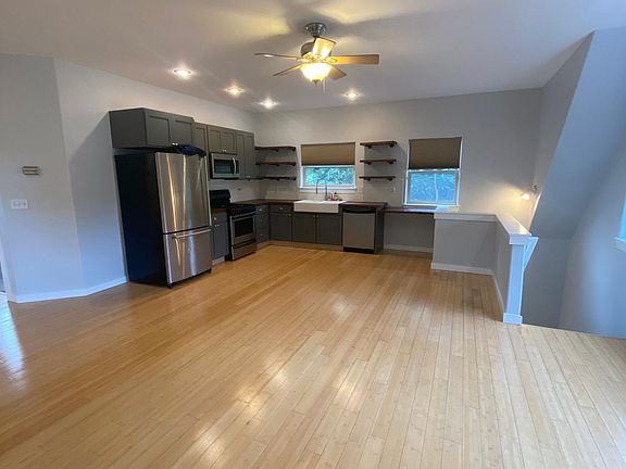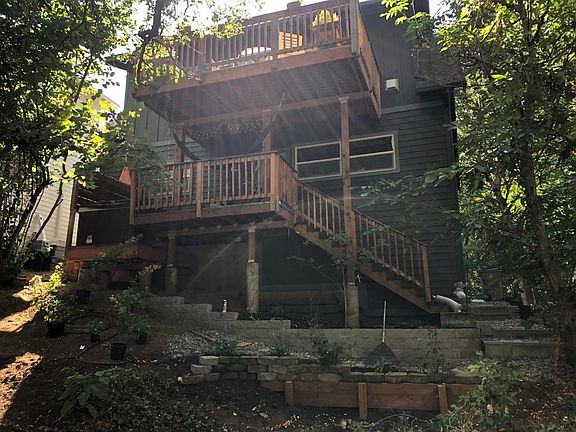 Freshly painted and maintained 2 story, 2 bedroom/2 bathroom house in the heart of Hood River in the Columbia Gorge. Borders May Street Middle School and is across the street from Providence Hood River Memorial Hospital. Situated at the end of the street, located between the Hood River Heights and Downtown, with plenty of nearby shops and restaurants. The home maintains a tranquil, removed feel despite being in the center of it all. Relax in the "treehouse" upstairs with an open-floor, main living area and 1 bedroom/bath. Enjoy a view of Mount Adams from the living room and a natural, treed landscape from the 120sq ft cedar upper deck. Fall asleep to the sound of the creek that runs year-round behind the house. Downstairs holds the private, large master bedroom with attached bathroom, access to lower deck and 4 seater hot tub, and entrance to 1.5 car garage with included shelving for all of your Gorge toys. -Utilities not included. -Tenant must abide by HOA rules for neighborhood (including maximum of 2 cars per household). -Tenant must upkeep landscape to current standard and take care to remove leaves and debris according to HOA policy. -Tenant must be reasonable and respectful of noise for our very kind and easy-going neighbors. -Dogs must be on leash and under owner observation on HOA property at all times. -Renters insurance is required and must address dog incidences (bites, etc) if applicable. -NO smoking.