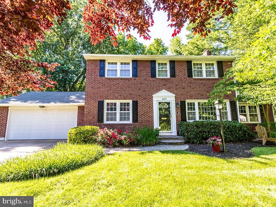 You're sure to love this classic brick colonial in N. Wilmington's Carrcroft neighborhood. The professionally landscaped and well-maintained exterior, with brick paver front walk, sets the tone for what's on the inside. Enter 603 Baldwin Lane via the foyer which leads to the formal dining room with chair rail and modern Pottery Barn chandelier. The large eat-in kitchen has cabinet and counter-space galore, updated recessed lighting, new pendant light and ceramic tile floor. The kitchen flows nicely to the large light-filled living room with hardwood floors and gas fireplace framed by a mantel with dentil moulding. Just off the living room is a family room/den with built-in bookcases that would also make the perfect playroom. There's also a beautiful 3-season sunroom addition with a ceramic tile floor, skylight and ceiling fan. The sunroom overlooks the large private fenced-in rear yard with shed. The main floor also features an updated powder room and access to the two-car garage. Upstairs, you'll find 3 nicely-sized bedrooms (two with walk-in closets). The master bedroom is spacious with loads of natural light, a walk-in closet, ceiling fan and master bath with linen closet. The updated hall bath is modern and neutral with ceramic tile tub surround and flooring, white vanity with drawers and granite banjo countertop and vaulted ceiling with skylight. The basement with egress makes the perfect game/TV room. Replacement windows and hardwood floors throughout most of the home. Close to Bellevue State Park with easy access to I-95. Seller is a licensed Realtor in DE/PA.