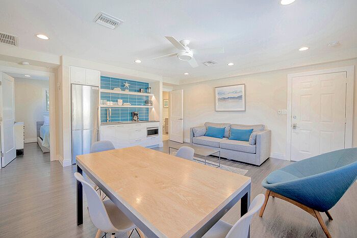 This property is a corporate rental. Please note that the monthly rental price for this property is dynamic and subject to seasonal adjustments. For an accurate quote, provide us with your intended move-in and move-out dates. Beachside 603 is a Gertrude Rentals property right on Beach Rd at Access 10. Large, Fully Renovated, 1BR Apartment, just 13 steps to \"beach-front in the world-famous Siesta Key Village! Spend your days soaking in Sun and Seabreeze\'s at the worlds #1 Beach, and evenings lounging dining and drinking alfresco at your choice of 20 fantastic restaurants. Just a 9 second walk to the beach path and an 8-minute walk or 1 minute ride on the free trolley to the best shopping, dining, and entertainment on the island. Sure to provide a combination of fun and relaxation you can\'t get in other getaways. *For larger groups, ask about additional space at this location! 603 SIESTA KEY 1BR AT A GLANCE - 15 steps from yard to access/path for Siesta Key\'s Best Beach and clear calm Azure Water & pure quartz White Sand! - Short walk or bike to the Village\'s World-Famous Dining & Entertainment. - Alfresco Dining on property. - Tide Pools & Sand Bars for lounging, sleeping, relaxing, or water sports. - Best Sunsets in North America with 300-degree views of the Gulf. - 20 Restaurant-Bars, Live Music, Daiquiris, Oysters, stone crab, ice cream, fresh donuts. - Kayak, bike, paddleboard, scooter, golf cart rentals. - Walk to Free Island Trolley & every activity imaginable. - A one of a Kind Siesta Key Experience. The Location - This will be easy just like vacations are supposed to be. Located on Siesta Keys highly coveted Beach Road, you exit the unit and immediately see wide open southerly exposure and a beach view. It\'s 13 steps from the yard to Beach Access 10, possibly the islands best beach today. It\'s a one-minute trolley ride or a two-minute bike ride to the Siesta Village for fresh oysters, seafood, tropical drinks, ice cream, entertainment, and even gourmet donuts. The beaches here have panoramic views of the gulf with wide open exposure to the North-West-and-South. This the top spot in North America for viewing sunsets. The water is shallow clear and calm with white quartz-sand tide-pools perfect for sleeping drinking or playing. You can swim or often wade to naturally occurring white sand cays popular with dolphin\'s sand-dollars and occasionally giant-conch. This is the spot on Siesta where you can go from the water to lunch or dinner and back to the sand without putting on your shirt and shoes. History There\'s no public parking in this area so, even though this is a gorgeous beach, it ends up being a little more private than most. When I was a kid growing up on Siesta Key, this beach access was called Palm Island and named after the island of the same name right at the end of the street. The island has a small bridge going to it and is literally a heart shaped island within the island of Siesta Key. When I was younger this was our lovers lane. Beach Gear - Correction for Air-b-n-b listings. We provide beach towels and beach chairs at every location, umbrellas and carts at most locations, and do not provide \"snorkeling gear\" at any locations. Sorry for the confusion. Snorkeling gear can be rented or purchased nearby. When you book with me you get a fully accessible and knowledgeable owner/host and reliable advice from an approved local expert. I can recommend the best spot for fishing or fresh fish, Michigan or Ohio State games, romantic-dinners marriage-proposals or singles, Eco-tourism, family friendly activities, or safe ways to lose your kids when you need a break. Events - only with prior approval. Terms - Payments are 50% refundable when canceled at least 60 days before arrival. Payments are not refundable when canceled less than 60 days before arrival. Events or gatherings involving outside guests are only allowed with prior approval from the management. Guest agrees to hold the Property Manager and Owner harmless from any liability for injuries while on vacation. *If you prefer insured bookings, we recommend providers Generali and Rental Guardian for Trip-Protection coverage. Support Post Booking - I understand vacation time is precious and I will make sure you get the most out of it. My number is the only contact information you need. My units are at the top attractions on the island. Cars are never required, but you will have private parking near the unit. Check-in any day of the week at any time using your private door-code. No requirement ever at checkout. Free early check-in when possible. Never hidden fees or solicitations. Every unit including this one is available for instant booking. Contact us to schedule a showing.