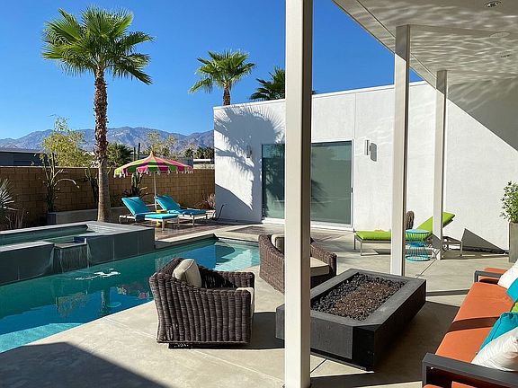 Opportunity awaits in Escena. This exclusive U-Shaped ''Arcadia'' design is only 1 of 7 designed and built by Alta Verde. The corner lot showcases western mountain views,3 Beds, 4 Baths plus Den. The home features floor to ceiling Fleetwood sliding doors which frame the pool, spa and large patio with IPE hardwood deck. In addition to 2KW of Owned Solar, Sonos audio system, quartz countertops, porcelain tile, and Italian cabinetry, each room is tastefully wallpapered to enhance the charm of this chic home and designer furniture. **This Luxurious home is being sold turn key with notable furnishings including: Herman Miller's Eames Lounge Chair & Ottoman, Julian Chichester's handmade Dakota dining table in cerused Oak, Theodore Alexander's Mahogany Ottomans, Bernhardt's Buffet and Emma Chair, Sputnik Chandelier, Cluster Pendant Lights, and Nixon cocktail table by Jonathan Adler, in addition, a well-curated collection of framed photos from Hollywood's Golden Age. Escena Golf Club is a luxury gated community with a Jack Nicklaus designed golf course, the Escena Lounge and Grill, and is just minutes to Palm Springs International Airport, downtown Palm Springs art galleries, restaurants and shopping. Make this home your prized possession.