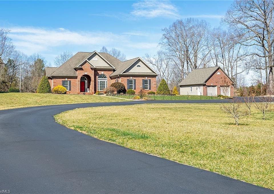 Motivated seller! Stunning brick estate on 6.88+/- private acres in North Davidson County, NC. This spacious one-level home features a finished walk-out basement, an attached two-car garage, a detached two-car garage, and a scenic setting. Inside, enjoy soaring ceilings, solid hardwood floors, and abundant natural light. The main level offers a spacious primary ensuite with an updated bath, a Jack-and-Jill bath shared by two bedrooms, an updated kitchen with stainless steel Bosch appliances and a gas stove, a breakfast nook, formal dining, and a laundry room. The basement boasts a den, his-and-her offices, a theater, a bedroom, a full bath, and a sitting room. A winding driveway leads to a 25-year wrnty Trex deck, brick patio & multiple outbuildings. Primary HVAC updated in OCT 2025 w/ 12 year warranty & 5 mini splits installed 2022 for custom zoned comfort on LL. This serene retreat offers privacy, space, and charm—just minutes from local amenities. Don’t miss this rare opportunity!