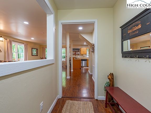 Escape to the serenity of this cozy mountain retreat, nestled amidst nature's beauty. The level wooded lot provides an oasis of privacy. Step inside to an open floor plan, seamlessly connecting each living space. The foyer welcomes you to drop off jackets and boots after long days exploring nature. As you gather around the crackling wood-burning fireplace on chilly evenings, feel embraced by warmth and coziness within these walls. Stainless steel appliances, kitchen with pantry & laundry. Conveniently located near all amenities on Beech Mtn and just a mile from Beech Mtn Resort, this home is perfectly situated for both relaxation and adventure. 2 bedrooms and 2 1/2 baths, there is ample space for family & guests to unwind comfortably. An additional room currently serves as an office but was previously used as a bunk room - perfect for accommodating extra visitors or transforming into whatever your heart desires. Storage abounds throughout the house with closets, pantry, huge attic space, and garage ensuring that everything has its place. Large master bedroom beckons with ensuite and walk-in closet. The guest bedroom has an Ensuite too. Whether you seek solace in nature or crave thrilling outdoor activities, this retreat provides an ideal base for your pursuits.