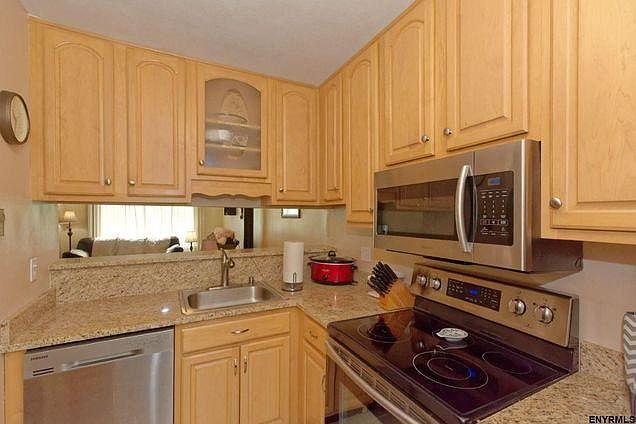 OPEN HOUSE 11/15 1-3 PM.. Ready to move in immediately. Great location: just six minutes drive from Regeneron, Easy access to Interstates I90 & I787, three minutes to Downtown Albany, three minutes to North Greenbush, plenty of dining and shopping Upgraded 2 bedroom condo with new sliding glass windows in East Greenbush School District. Newer A/C, upgraded kitchen w/granite, newer appliances, cabinets, upgraded half bath; master with new sink & console, laundry in unit, full pull-down attic, Gas Fireplace, Ceiling Fan Maintenance free as the owner pays HOA fee, which covers trash removal, snow removal, lawn maintenance, pool access. Pets considered with a deposit and owner approval. One covered parking included & common guest spaces. Please call or text show contact info if you are interested. First month and Security Deposit Required. $25.00 application fee. The application fee will be returned if you are accepted as a Tenant.