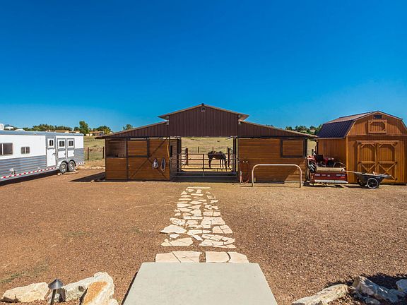 - Exterior Features: Barn, Landscaping-Front, Corral/Arena, Dog Run, Driveway-Gravel, Landscaping-Rear, Level Entry, Porch - Covered, Shed, Spa/Hot Tub, Sprinkler/Drip, Fence - Part, Outdoor Fireplace, Stable