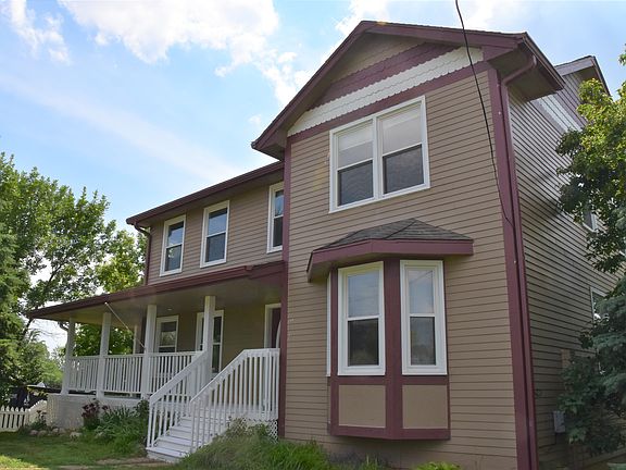 Stop the bus! This 5 bedroom, 4 bath updated farmhouse-style two-story will steal your heart! The white picket fence and partial wrap around porch make you instantly feel at home! Updated from top to bottom with great special features and lots of space for all your needs. The front entry is a spacious living room with a conveniently located bath. Formal dining room has a fireplace with lots of character and gorgeous plank flooring running throughout the main level. Entering the kitchen you'll notice counter space & cabinets galore, as well as plenty of room for a dining area & seating at the counter, and huge dining area connected to the kitchen as well. This space was made for gathering with friends and family! 2 sets of pocket doors separate split the main level in half, separating the kitchen/dining area from the rest of the main floor. Upstairs is the master bedroom en suite, 3 additional bedrooms and another full bath. Finished walkout lower level includes 4th bedroom, updated 1/2 bath, laundry area and large storage room. Wait, there is MORE! L-shaped great room makes plenty of space for entertaining with sliders to the exterior featuring a new concrete patio; deck, partially fenced yard with 2 car detached garage, storage shed and chicken run w/enclosed garden! Call your agent today!
