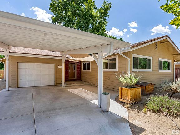 Charming home on the west side Carson City! Picture this cute abode with 3 cozy bedrooms, 1 bath, 1495 square feet of pure delight, and an incredible 450 square foot bonus room that's just waiting for your personal touch. This gem, built in 1960, is not just a house – it's your future home sweet home! Convenience is key with this gem – close to downtown, hiking trails, biking adventures, and dining hotspots just waiting to be explored in your new neighborhood., Let's talk upgrades! This lovely home boasts a chic new front door, skylights in the living room inviting the sunshine in, new kitchen range and refrigerator, new washing machine, new A/C and furnace systems to keep you comfy year-round, new tankless water heater for endless hot showers, fresh exterior siding giving it a sleek look, a new concrete driveway and brand-new carport to welcome you home, and a new sewer service ensuring everything runs smoothly. Wander the new south side walkway, and relax on your new back patio as the day fades away. Fresh front and side yard landscaping adorned with a low water use drip system. Don't miss out! Make your appointment to view this home today! *Home is virtually staged.