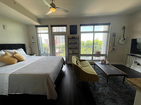 Parking included! Experience life at the very center of Rainey Street. The Shore celebrates its surroundings with high-end amenities (24/7 concierge, community center, fitness center, and a pool with new propane gas grills), nearby restaurants, shops, and services. Easy access to Town Lake a 5 minute walk to the Rowing Center! This studio offers hardwood floors, stainless steel appliances, in-unit washer & dryer, Nest thermostat, a large balcony, and an even bigger shower. Plus, it's Google Fiber ready. One reserved parking spot in garage on lower level. Pet friendly. Note: Balcony view has been obstructed by the new construction. Tenant responsible for utilities & internet. Must carry renter's insurance. Available now. 12-month lease minimum, longer term available (24-month with discount). Renter pays water, electric and internet. No smoking. Cat or small dog allowed (45lbs) with refundable pet deposit of $500. Must carry and provide proof of renter's insurance ($100k coverage). There is a $650 deposit required by the HOA to reserve the loading dock and service elevator when you move in. $150 of this deposit is non-refundable. This is optional if you chose not to use the loading dock/service elevator you do not need to pay. These are available Mon-Sat 8am-5pm Only.