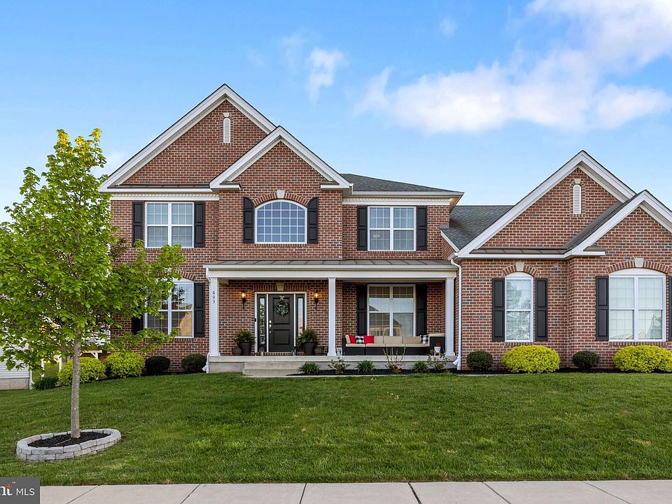 Introducing.... 603 DETWEILER DR in highly sought-after Pennland Farms built by Toll Brothers. This beautifully crafted Everett Gettysburg model, brick-front 2-story Colonial home with a 2-car side entry garage offers the largest floor plan in the neighborhood. Situated on a corner lot, this 5 bedroom, 2 full bath & 1 half bath home has been meticulously cared for. Upon entering the soaring 2-story Foyer, you will be attracted to every detail. The open floor plan is ideal for today's lifestyle. 9'ft ceilings, recessed lighting, and handsome hardwood flooring flow through the entire main floor. The Formal Living Room and adjacent Dining Room with crown molding, chair rail, and gorgeous pillars are fantastic areas for entertaining guests, while the stunning Palladian kitchen with the Greenhouse bump-out allows for creating many special home-cooked meals. The kitchen features include stylish 42-inch white cabinets, granite countertops, subway-style tile backsplash, pendant lighting, stainless steel built-in appliances, gas cooktop, stainless steel range hood, island seating, pantry, large breakfast room, and tons of natural light filtering through the Palladian window, sliding glass doors and skylight. The cozy expanded Family Room with cathedral ceiling boasts a convenient gas fireplace with a beautifully detailed mantle, ceiling fan, triple window & recessed lighting. A convenient Laundry Room, half bath, and private Office/Study currently being used as a Fifth Bedroom complete the main floor. The second floor includes a sumptuous Master's Suite with a dressing area, large walk-in closet, a luxurious master bath, with a glass shower surround, a large soaking tub, double bowl vanity, ceramic tile flooring and shower, a convenient linen closet, and gorgeous barn doors. Three additional spacious bedrooms and a full bath with shower, tub, & tile flooring round out the second floor. Downstairs, the expanded basement has been fully finished in the most tasteful way keeping with the aesthetic of the entire home. The space has been utilized to its maximum potential adding approx. 2,000 additional square feet of living space, including a Guest Bedroom and Exercise Room! 9'ft ceilings, recessed lighting, resilient luxury vinyl plank flooring, beautiful barn doors, and a grand bar with marble countertops and pendant lighting accent this recreation space. The finished basement is heated and cooled by two mini-split wall units controlled by remote controls for your added comfort and convenience. This home is quite remarkable and move-in ready. Just pack your bags; this is the one! Pennland Farms is a wonderful community where the homeowners can enjoy the neighborhood pavilion, two playgrounds, recreation field, and scenic walking trail.