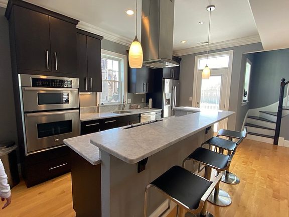 Gorgeous Penthouse Condo located in one of South Boston's favorite neighborhood! This condo has 2 great size bedrooms and 2 full bathrooms. Unit features maple hardwood floors throughout, marble master suite has separate jacuzzi tub and glass enclosed shower. The whirlpool kitchen has double wall oven, refrigerator, microwave and dishwasher features carrera marble and 6 burner island cooktop w/ hood. This spectacular unit has 2 rear decks of living room and kitchen. Gorgeous 16' x 16' Private Roof-deck that features wet bar/fridge and has spectacular city and ocean views. Easy access to all bus routes and highway/Pike access.
