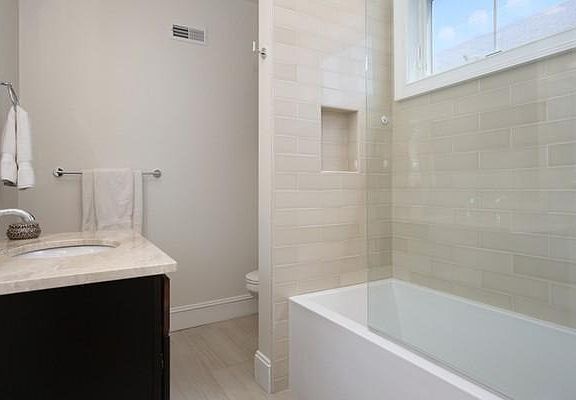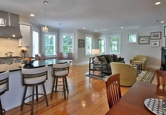 Gorgeous 2 bedroom, plus office 2.5 bath condo! Quality craftsmanship is evident throughout this elegant home located in a desirable City Point location near the beach and restaurants. Newly constructed in 2015 and boasting tons of natural sunlight, this 2nd level, floor-through residence features 2 master bedrooms with en-suite baths plus a study and a generous great room ideal for entertaining. Off of the living area is a private deck and access to the deeded parking spot! Chef's kitchen with a size-able island, Thermidor appliances, granite counter tops, and Grohe plumbing fixtures.Central A/C, gas fireplace, red oak flooring, marble bathrooms with radiant heat, in-unit laundry, private basement storage, and a dedicated parking space are among the many distinctive property features! Upgrades include a bar with a subzero wine fridge, custom closets, plantation shutters and fabric blinds, a fully built-out study with tremendous storage, and a window seat in the bay window.