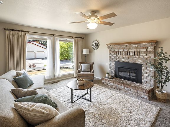 Move-in-ready single-level home featuring 3 bedrooms and 2 full bathrooms. The living room welcomes you with large picture windows that bathe the space in natural light, while the fireplace provides a cozy ambiance. The updated kitchen boasts sleek granite countertops, gas appliances, and a charming breakfast nook with sliding doors leading to the covered back patio – perfect for morning coffee or al fresco dining. The fenced backyard is complemented by a spacious shed for all your storage needs. The primary bedroom is complete with an ensuite bathroom with walk-in shower and a walk-in closet. The 2-car attached garage features a ramp for easy accessibility. Situated in the established Buckley Estates neighborhood, this home enjoys the benefits of a friendly community, close to parks, schools, and the many amenities Newberg has to offer. Don’t miss the opportunity to make this delightful property your new home!