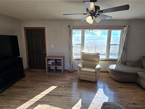 Looking for that country feel on the edge of small town America? Look no further! This charming home in a quiet neighborhood with a southern view has plenty of space for your needs. Fully covered front deck overlooking country acreage! Large driveway with room for 6+ vehicles, open backyard through the double patio door and a storage shed. Large windows in the living room and an open kitchen/dining area with a pantry closet. Large primary bedroom, second bedroom, and full updated bathroom on the main floor. Two additional non-conforming bedrooms, office/hobby room and a large family/game room with walkout on the ground/basement level. Plenty of room for improvement or customization so bring your ideas! Small town living with high speed internet to keep you connected. Don't miss this chance for an affordable home. Call to schedule your showing today!
