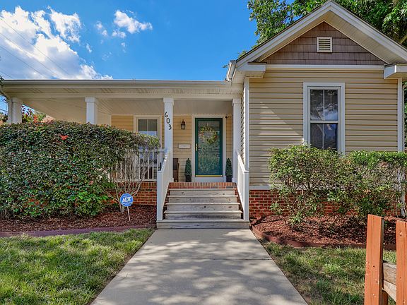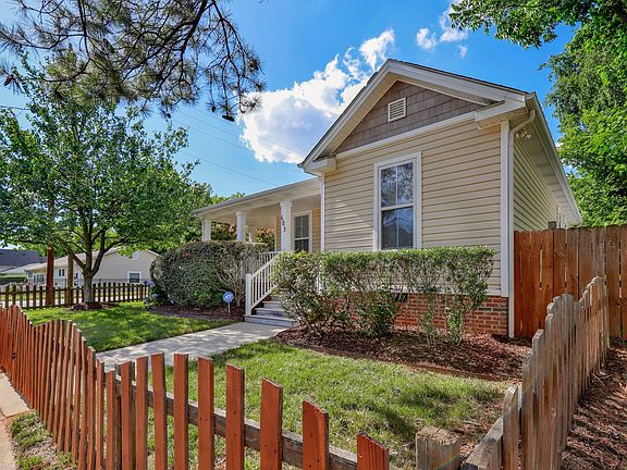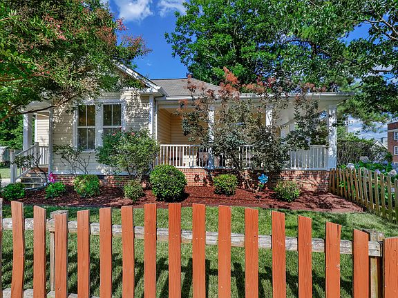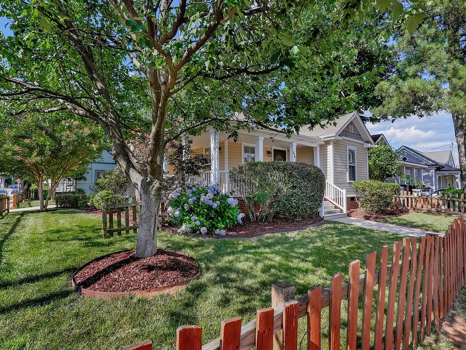 Live the city life in this cozy cottage in the heart of downtown Raleigh! Situated on a corner lot with lovely mature landscaping on a very large lot, this beauty has been well maintained! Newer flooring, smooth ceilings, spacious eat-in kitchen with breakfast bar, large pantry, and nice sized closets. Primary bedroom is separate from secondary bedrooms and includes dual closets with plenty of storage. The secondary bedrooms also have spacious closets. You'll love the rocking-chair front porch overlooking a beautifully landscaped fenced yard and a tree-lined residential street. There is an exterior storage room to stow lawn mower, bikes, etc. The location is perfect, just a few blocks away from Moore Square, museums, restaurants, and more. Be sure to view the interactive virtual tour!