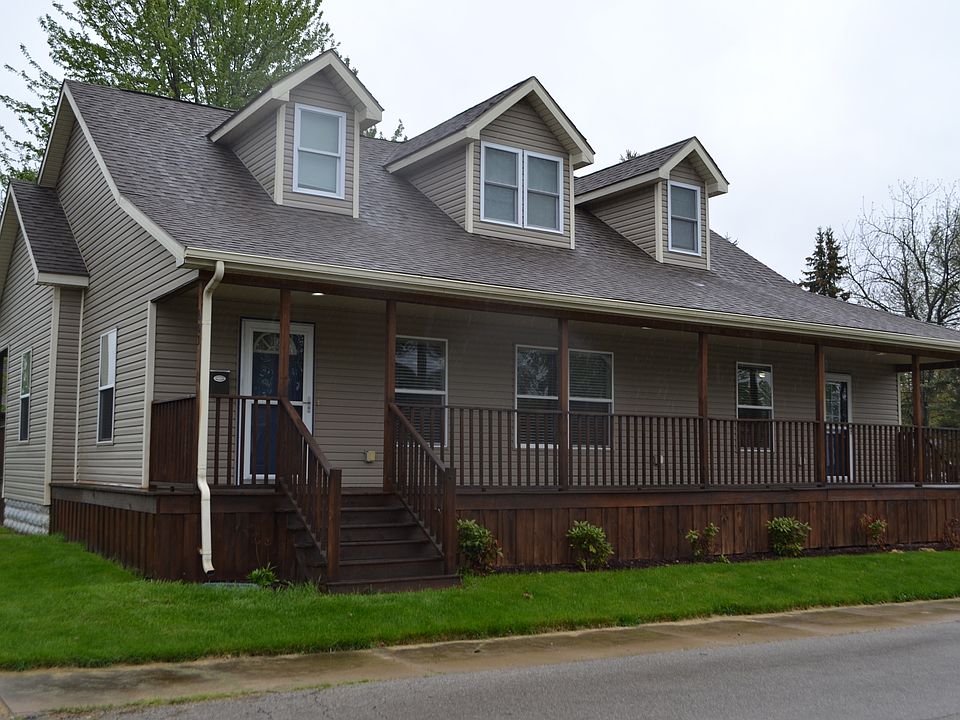 **Renovated** brand new main level carpet, fresh paint throughout, move-in ready home. This home features an open floor plan with 9ft high ceilings on main level, crown molding, hardwood flooring in dining room and kitchen with cherry KraftMaid cabinetry with pull-out pantry, pull-out drawers, eat-in island and recessed lighting. Another highlight includes main level bedroom with private covered deck looking out into the newly fenced in back yard. Master suite also includes a large walk-in shower and 2 walk-in closets. On the 2nd level, there is a loft and 2 bedrooms with dormer areas. Other items include 2nd main level bedroom, almost 1,300 sqft of basement, covered front porch, rear patio, garage, corner lot, and convenient in-town location. NEW WATER HEATER.