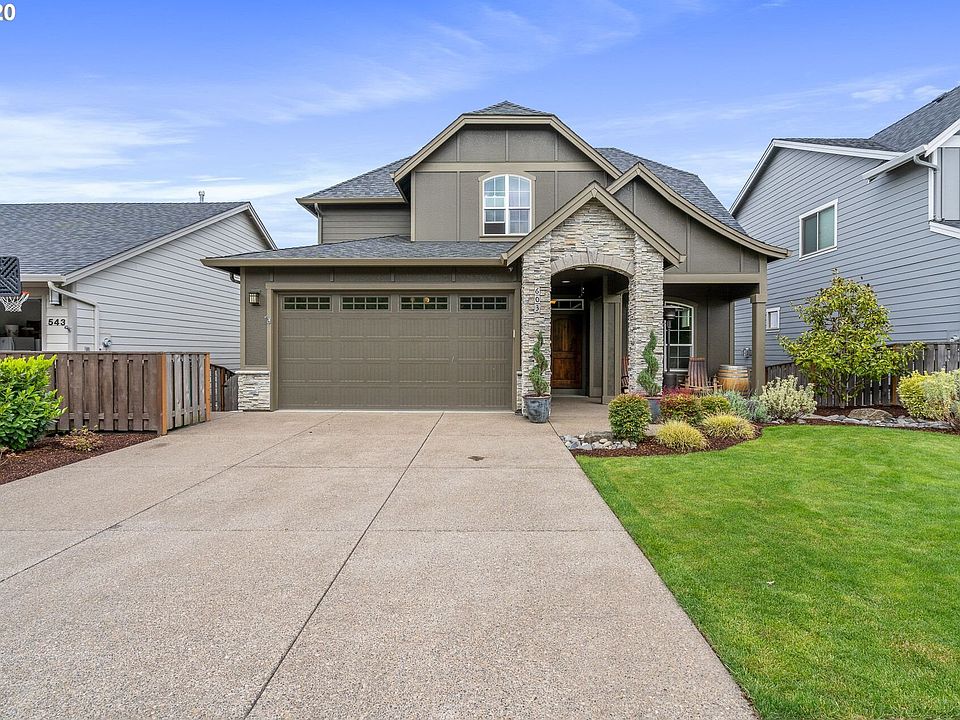 Terrific home in The Greens at Spring brook Chehalem golf course community with the park across the street. 4 Bedrooms with 3.5 bathrooms and a bonus room upstairs. Master suite with soak tub and walk in closet. Beautiful granite kitchen with stainless appliances, wood floors and formal dining room. Possible in law suite downstairs with walk out with stairs to upstairs deck. Don't miss the wine cellar downstairs.