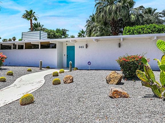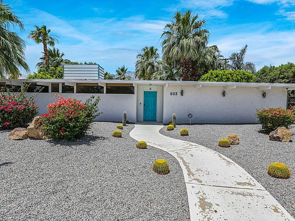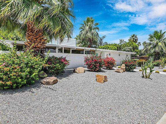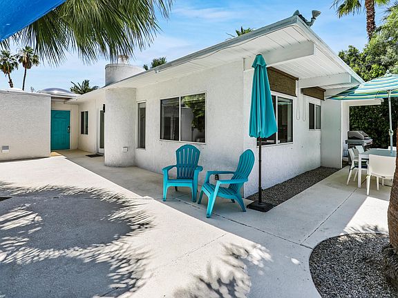 Welcome to Little Beverly Hills! Once you step through the vibrant teal door you are instantly treated to gorgeous mountain views. This charming Mid Century Modern Home is designed by William Krisel, and features three bedrooms and three bathrooms. The outdoor Courtyard is where the magic happens, with stunning mountain views, an outdoor game room, sparkling geometric pool and spa. For a little more privacy escape to the casita or enjoy the main home. Speaking of the main home, it features brand new ceramic tile throughout and a cabana bath for your guests. The kitchen has been updated with granite counter tops and the views from the dining room are killer! This home has a successful rental history. Do not miss this opportunity to own a well-priced Mid Century Modern Home in the South End of Palm Springs!