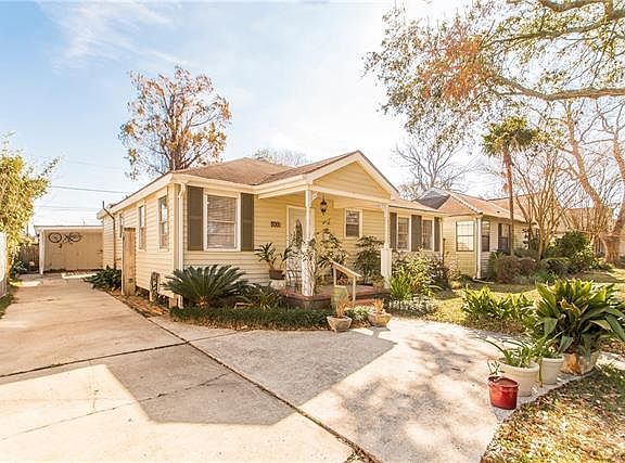Cottage on a charming tree lined street. Prime location. Open concept, wood floors, formal dining and living area. No carpet. Primary suite has large walk in closet and private bath. Both baths have been freshly remodeled. New flooring in living area with sliding glass doors lead out to a cozy back patio. Large drive way with side yard access and fully fenced yard. Located only 10 minutes from CBD/French Quarter.
