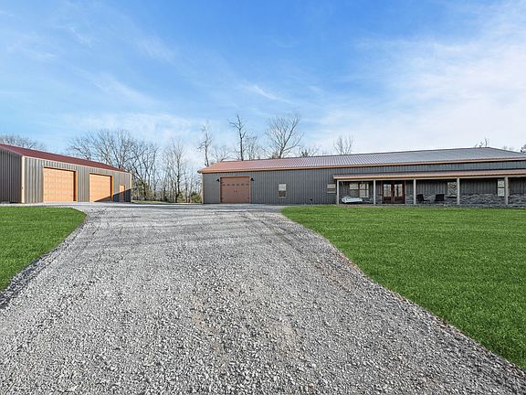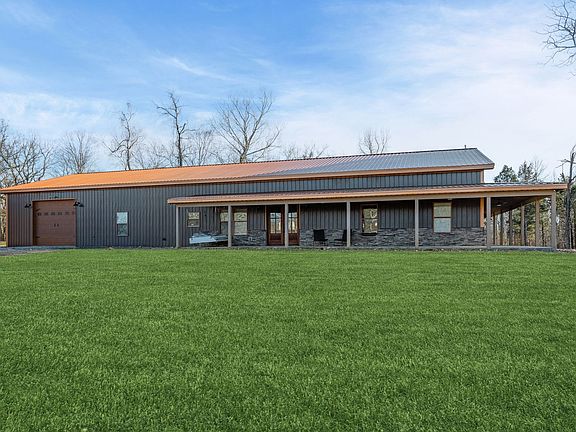 Room to realize your dreams and retreat at your peaceful paradise This impressive 4-bedroom, 3.5-bathroom barndominium, provides 3,400 sq ft of luxurious, single-level living space on approximately 10 acres. The open-concept design features soaring 12-foot ceilings and grand 8-foot doors, creating an expansive, airy ambiance. The gourmet kitchen is equipped with custom cabinets, quartzite countertops, an oversized island, cooktop, double oven, pot filler, and a butler’s pantry—perfect for culinary enthusiasts. The inviting living room showcases a majestic cathedral ceiling and a deluxe wood-burning stove set against a striking rock wall. The primary suite offers a spa-like wet room designed for ultimate relaxation, while a second primary suite caters to multi-generational living or guests. A functional laundry room with ample cabinetry, sink, and custom hanging rack enhances convenience. Constructed with $20,000 worth of spray foam insulation and two Trane units under warranty, this home ensures year-round comfort. Nestled on approximately 10 picturesque acres (to be surveyed from a larger parcel, with the remaining land retained by the current owner). Outdoor amenities include an expansive 120-foot covered porch ideal for savoring serene views, an in-ground pool with an automatic cover for effortless maintenance and enhanced safety, and multiple workshops with electricity, including one designed for RV enthusiasts with separate utilities and hookups. Additional features such as heated floors and a climate-controlled garage ensure comfort for all your projects and vehicles in any season. Conveniently located minutes from I-40, Montgomery Bell State Park, downtown Dickson, and the local Splash Pad, this unique barndominium harmoniously combines serenity and modern amenities, making it the perfect retreat for those seeking luxury and comfort in a picturesque setting. Shipping container does not convey. Spa has no electricity but conduit is ran to it.