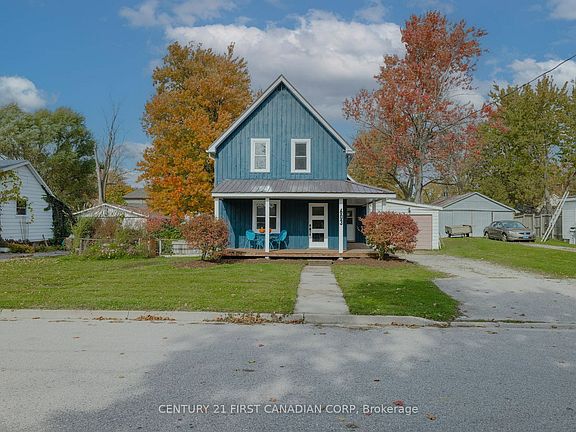 This beautifully updated 3-bedroom, 2-bathroom home is situated in the charming community of Watford, just minutes from Highway 402 and a short 15-minute drive from Strathroy. The main floor features a bright, open-concept living area that includes a spacious living room and a play area for kids. The updated kitchen boasts custom cabinetry, new countertops, and a stylish backsplash, offering direct access to a covered wrap-around porch. Completing the main floor are a laundry room and a 4-piece bathroom with both tub and shower. On the second floor, you'll find three inviting bedrooms and another 4-piece bathroom, which showcases a tiled shower with dual shower heads. Step outside to enjoy the expansive backyard, complete with a deck, a beautifully landscaped garden, fencing, and plenty of open green space. Additional highlights of this property include low property taxes, a brand new gas furnace with transferable warranty, town water and sewer services, and all-new aluminum soffit, fascia, and eaves. The home also features updated PVC plumbing and water lines installed in 2022, along with new flooring and a custom-milled cedar front porch with hemlock siding. All thats left to do is unpack and relax!