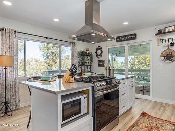 FABULOUSLY REMODELED & completely updated single story home in the Prescott hills, minutes from downtown, & walking distance to Taylor Hicks! Surrounded by trees in a quiet & peaceful cul-de-sac, this enchanting 3 bedroom 4 bath home is bright & spacious with walk-in/his & hers closets. Each bedroom has private access to a patio or covered 600 s/f wrap around porch with views of Granite Mountain. Bright, modern & completely upgraded kitchen with top of the line (smart) stainless steel appliances, quartz countertops, soft close cabinets & large farmhouse sink. Delightful living room fireplace to warm up the chilly nights & a large heated & cooled walk-out basement ideal for workshop or studio. Attic storage available in the oversized 2 car detached garage along with RV parking. More