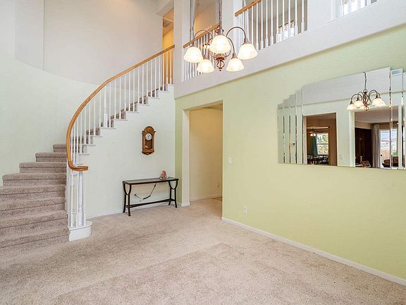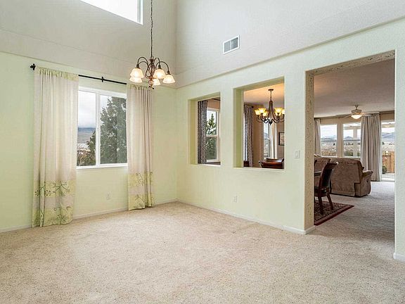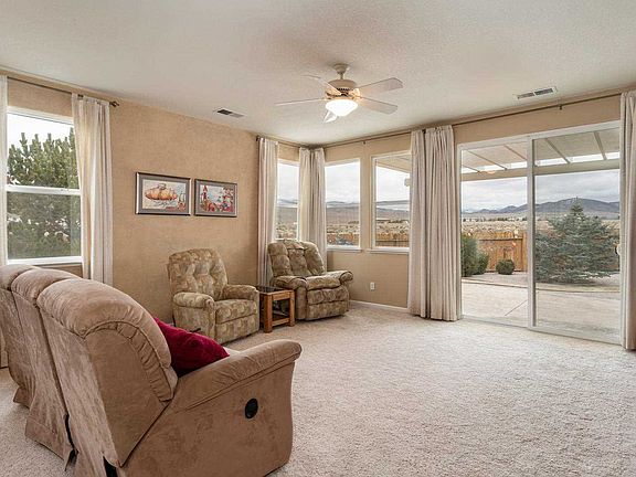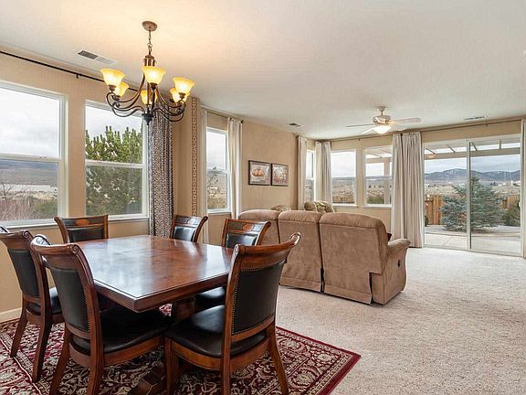 This well thought out 4 bed/3 full bath home features tons of natural light and fantastic views of the Pinenut Mountains. Perfect for large gatherings or cozy, quiet evenings. Open floor plan w/perfectly situated kitchen provides great continuity. Kitchen w/granite counters, custom cabinets & convenient breakfast bar. Main level w/master ensuite w/lg walk-in closet, separate shower & lg soaking tub. 2nd bedroom & full bath. Upstairs, 2 bedrooms, full bath and great loft space for extra sleeping, game room,